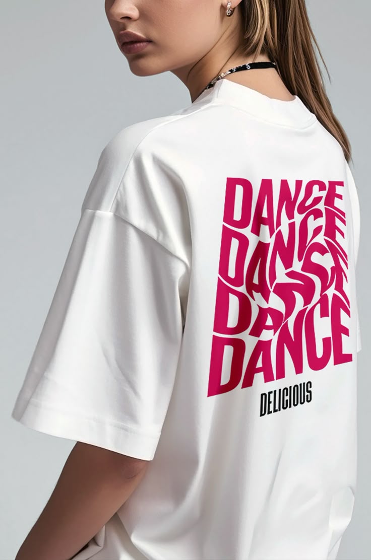 Bold moves, bigger vibes The Dance Dilicious oversized tee is made for those who groove like nobody’s watching comfy, stylish, and unapologetically you